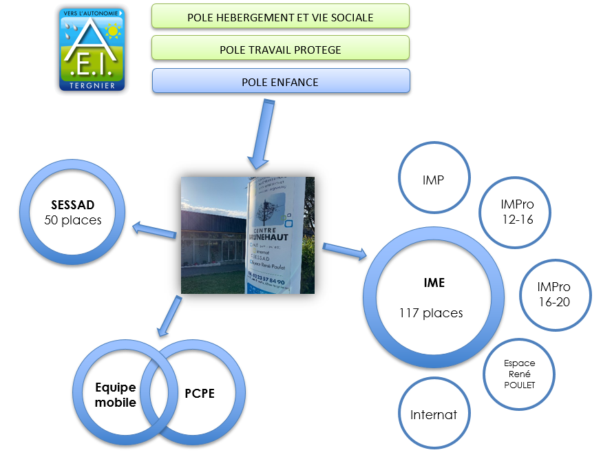 Sous la responsabilité de Ludivine LEFEVRE, Directrice, le pôle Enfance de l’AEI propose un accompagnement éducatif, médico-social et pédagogique aux enfants et adolescents en situation de handicap physique et psychique. Il regroupe plusieurs établissements et services, au sein du Centre Brunehaut :